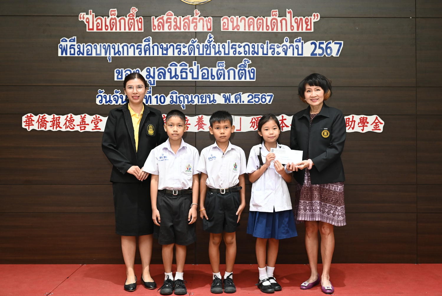 วันนี้ (วันจันทร์ที่ 10 มิถุนายน 2567 เวลา 10.00 น.) มูลนิธิป่อเต็กตึ๊ง นำโดย นายวิเชียร เตชะไพบูลย์ ประธานกรรมการมูลนิธิฯ เป็นประธานในพิธี พร้อมด้วย นายวิรุฬ เตชะไพบูลย์ ที่ปรึกษาประธานกรรมการ นายวิชิต ชินวงศ์วรกุล รองประธานกรรมการ นางศิริกุล โอภาสวงศ์ กรรมการและเลขาธิการ คณะกรรมการ และผู้ช่วยกรรมการการมูลนิธิฯ ร่วมในพิธีมอบเงินทุนการศึกษาระดับชั้นประถม ประจำปี พ.ศ. 2567 ให้แก่เยาวชนที่ประพฤติดีแต่ขาดแคลนทุนทรัพย์ จำนวน 1,500 ทุนๆ ละ 2,000 บาท รวมเป็นจำนวนทั้งสิ้น 3,000,000 บาท (สามล้านบาทถ้วน) เพื่อช่วยเหลือให้เยาวชนที่ขาดแคลนทุนทรัพย์ได้มีโอกาสเท่าเทียม สามารถศึกษาเล่าเรียนต่อโดยไม่ต้องยุติการศึกษาเพราะขาดแคลนทุนทรัพย์ และเติบโตสร้างอนาคตตามความมุ่งหวังของตนเองและครอบครัวต่อไป โดยมี เยาวชน และผู้แทนจากสถาบันการศึกษา เป็นผู้รับมอบ ณ ห้องประชุมชั้น 2 อาคาร 2 มูลนิธิป่อเต็กตึ๊ง พลับพลาไชย กรุงเทพฯ