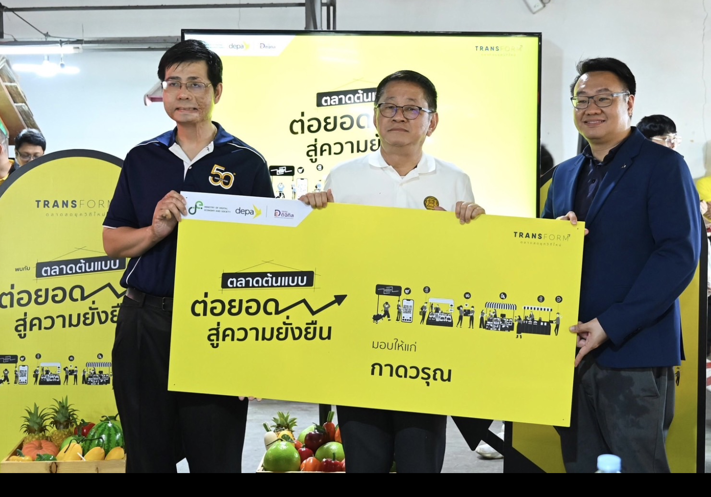 สำหรับกิจกรรม ‘ตลาดต้นแบบต่อยอดสู่ความยั่งยืน’ ภายใต้โครงการ Transform ตลาดสดยุควิถีใหม่ (ขยายผล) เป็นการติดตามและประเมินผลการส่งเสริมการประยุกต์ใช้เทคโนโลยีดิจิทัลจากดิจิทัลสตาร์ทอัพไทย แก่ผู้ประกอบการตลาด ผู้ประกอบ SMEs และผู้ประกอบการรายย่อย พ่อค้าแม่ค้า หาบเร่ แผงลอยผ่านบัญชีบริการดิจิทัล ควบคู่กับการลงพื้นสร้างความตระหนักรู้เกี่ยวกับการประยุกต์ใช้เทคโนโลยีเพื่อยกระดับการบริหารจัดการธุรกิจ สร้างช่องทางการเข้าถึงผู้บริโภค เพิ่มรายได้และลดรายจ่ายจากการนำเทคโนโลยีมาใช้เพิ่มประสิทธิภาพการดำเนินธุรกิจในยุคดิจิทัล โดยโครงการ Transform ตลาดสดยุควิถีใหม่ และโครงการ Transform ตลาดสดยุควิถีใหม่ (ขยายผล) ดำเนินการใน 75 ตลาด 25 จังหวัด รวมกว่า 100,000 แผงค้า